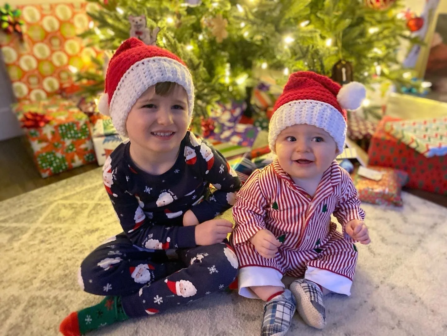 In December 2021, I freehanded some cute little Santa hats for my boys - then aged 3 and 8 months - for the holidays. Pretty soon after he saw the undeniable cuteness, my husband put in his order: “Can you make one of those for me next year?” A couple days later, we agreed that we ALL needed a Santa hat next year! My only issue as a completely inexperienced designer was that I hadn’t written down a pattern.