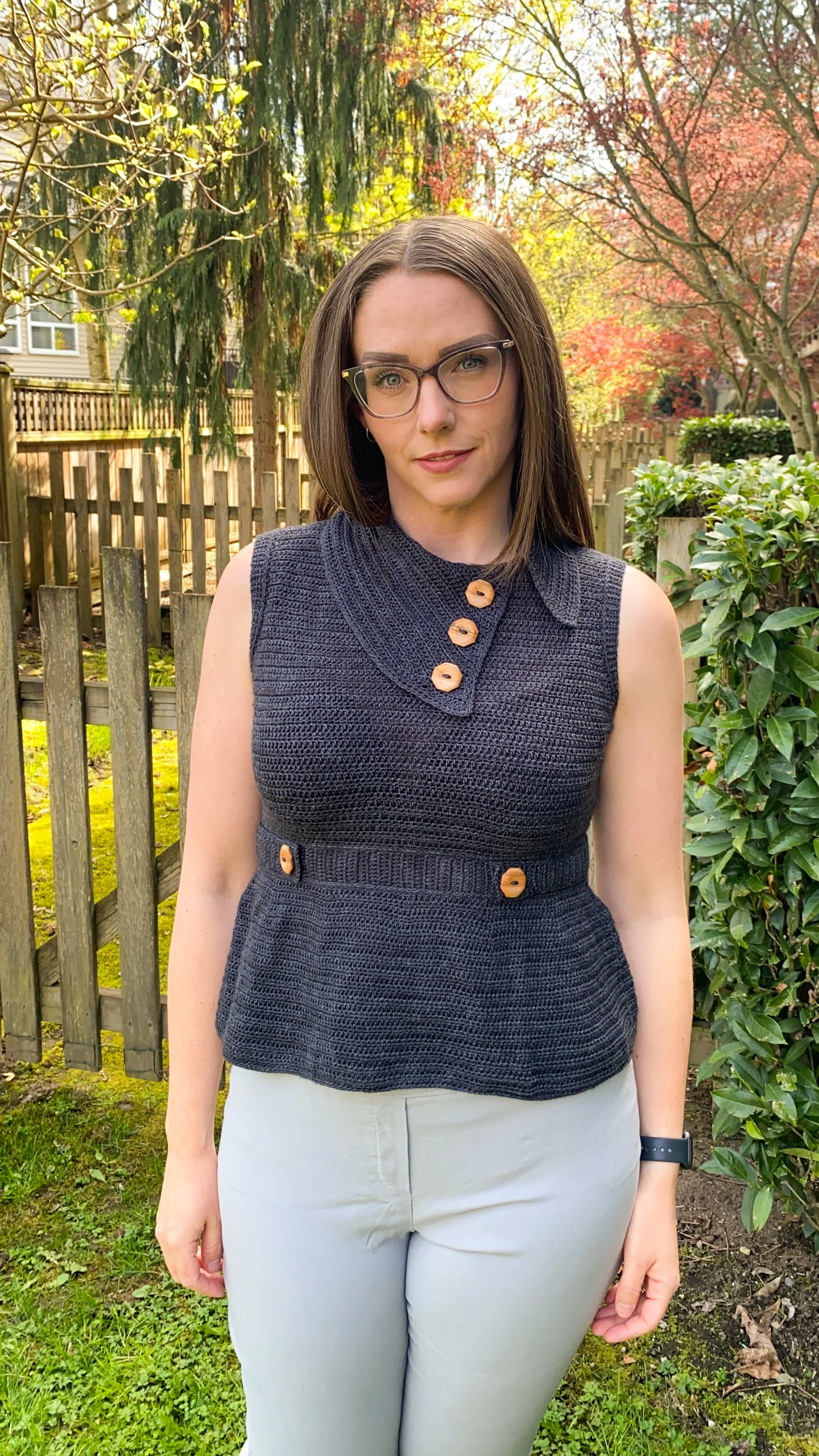 She’s certainly a classy and elegant top, perfect for the office or layering during the shoulder seasons. The Into the Archives Tank boasts an adorable empire waistline detail, a peplum finish to the body, and tapered cuffs at the shoulder. Five 1” buttons finish off the gorgeous cowl and the button tabs at the waistline. This is designed with fingering weight yarn, so it’s light enough to wear in the summer months, too!